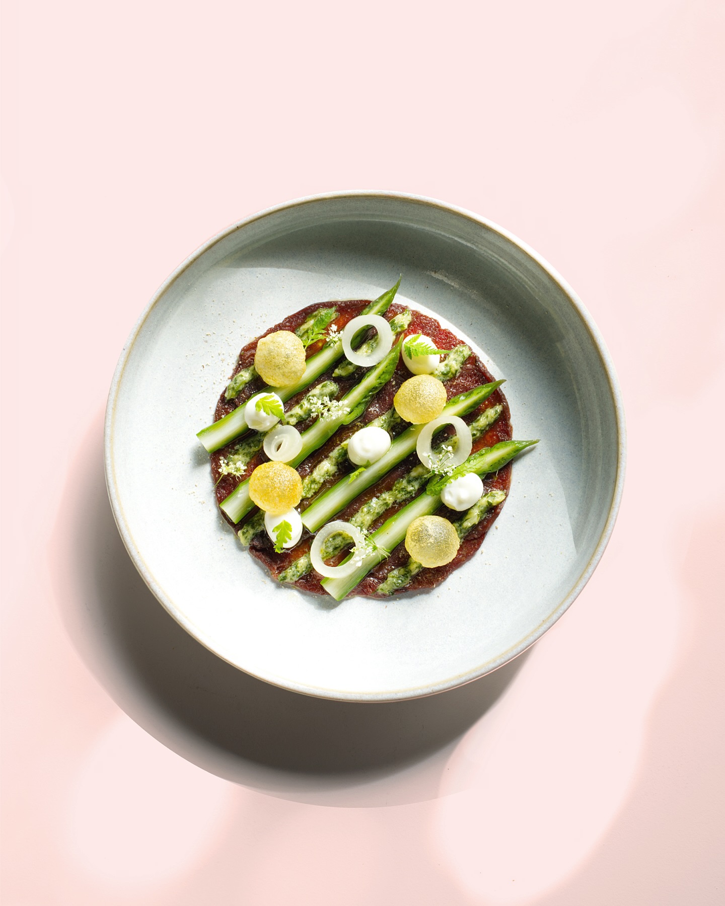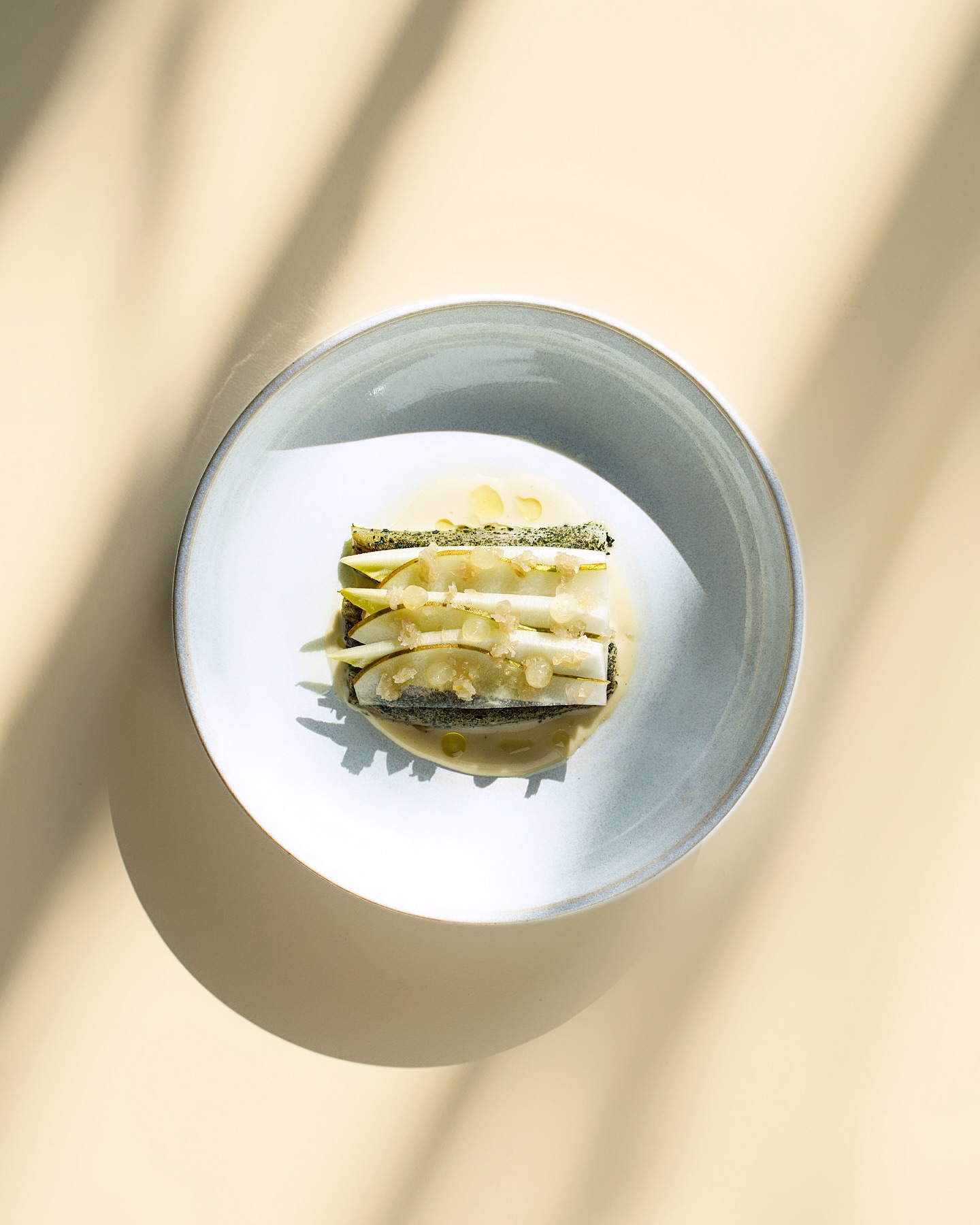Hoewel ze twee tegenpolen zijn, vullen Jonas en Laurence elkaar perfect aan. Samen creëren ze een puur, licht en verfijnd menu, waarbij alles wat groeit en bloeit centraal staat. Met een sterke voorkeur voor lokale seizoensproducten zetten ze groenten in de hoofdrol, zonder daarbij smaak of elegantie uit het oog te verliezen.